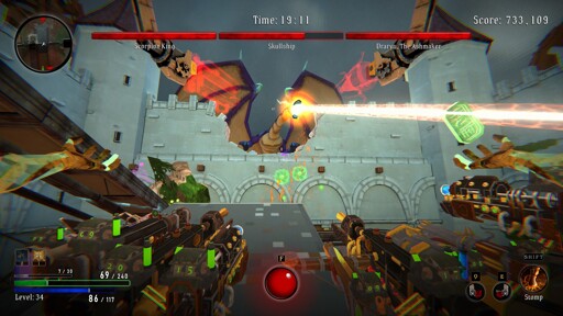 Fortunately, you can see all enemies through walls, so you’re never surprised going around a corner. Bosses show up red when looking at them through walls, so you can quickly identify them from across the map.