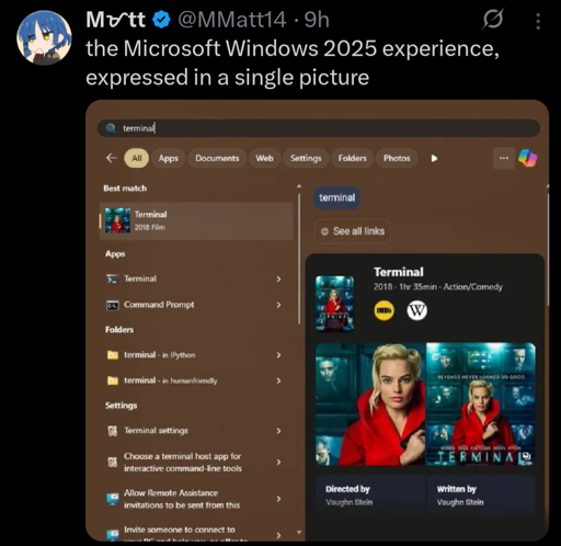 arrow-up14arrow-down1imageIt's probably not reasonable to expect this to improve in 2026. media.piefed.worldThe Picard Maneuver@piefed.world to Microblog Memes@lemmy.worldEnglish · 27 days agomessage-square13linkfedilink