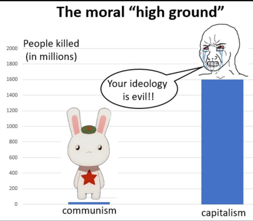 Every death by British empire’s capitalism (Irish genocide, Bengal famine, Slave trade, Colonialism/Colonial wars (India, Africa, North America, South east Asia, Oceania, Middle east, …) , Opium wars, Massacres against independence movements (India, …), …)