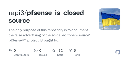 The only purpose of this repository is to document the false advertising of the so-called "open-source" pfSense®™ project. Brought to you courtesy of Netgate/Rubicon Communications LLC/ E...
