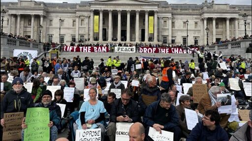 The entirely peaceful protest was held to oppose the proscription of Palestine Action. It was organised by Defend Our Juries and attended by over 1,000 people. Of the arrests, 488 were for holding up signs declaring, “I oppose genocide. I support Palestine Action”.