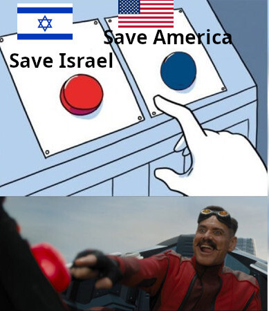 I think the two buttons are a metaphor for two directions in the Democrats’ campaign messaging 2024. The red button represents maintaining allegiance to Israel in the midst of an ongoing genocide. The blue button represents doing literally anything other than actively funding that genocide, using those billions of dollars to maybe fund healthcare, education, infrastructure, like literally anything else that would resonate with the American working class and garner more votes for the Democratic party. Just a guess tho.