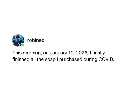The guy in front of me at the checkout had his cart full of toilet paper. Jokingly, I asked him if COVID is coming back. He laughed and told me it’s for his companies’ office.
