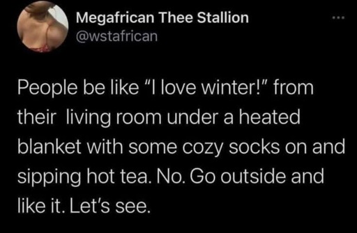 arrow-up1554arrow-down1imageWinter loverslemmy.worldickplant@lemmy.world to Microblog Memes@lemmy.worldEnglish · 4 days agomessage-square134linkfedilink