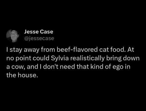 But Sylvia could scavenge a cow some other animal hunted and left. So…