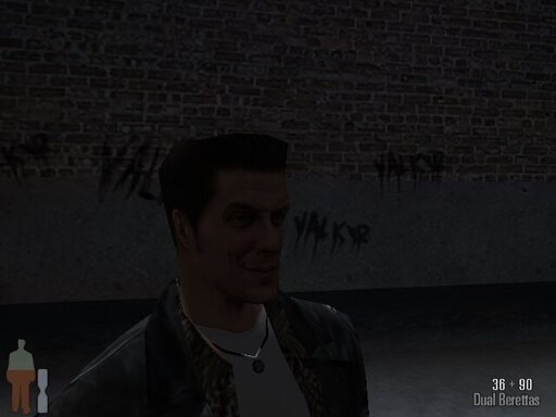 Today’s game is Max Payne. I continued my playthrough today with a friend who’s on call. I was just kind of peeking around with the camera when i noticed the writing on the wall behind Max (literally). I probably missed it my first playthrough because i was blind, but it’s kind of ironic that the writing was literally on the wall the entire game.