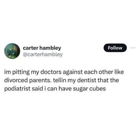 yeah i assume so, but still, my dentist told me i should spend at least an hour a day on teeth care every day, and a fully attentive hour too. like bro, when am i supposed to have time between work, general hygiene, teeth care, meal making, and chores to do something i enjoy doing
