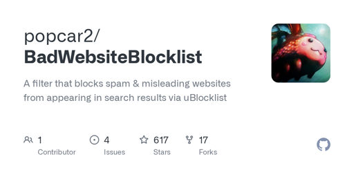 I browsed other blocklists and wasn’t very satisfied from what exists now; the goal of this one is to be super organized and transparent, explaining why each site was blocked via issues. Contributions welcome!