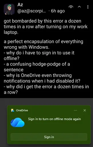 People that don’t want to use the cloud service (or don’t want to use specifically Microsoft’s cloud service), should not be badgered about it at every opportunity.