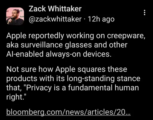 I assure you, those meta glasses are storing every piece of tagged data into a database globally accessible to meta engineers. They’ll figure out the profit angle later, if they haven’t already.