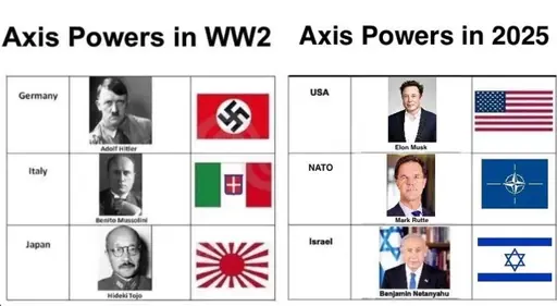 minus-squareanotherspinelessdem@lemmy.mllinkfedilinkarrow-up19·2 months agoSouth Africa are part of the allied powers now. They sued Israel for their genocide at the ICC. Musk is just a former parasite of them.