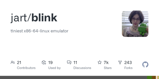 cm0002@lemmy.sdf.org to Opensource@programming.dev · 7 months agoblink - tiniest x86-64-linux emulatorplus-squaregithub.comexternal-linkmessage-square0linkfedilinkarrow-up10arrow-down11