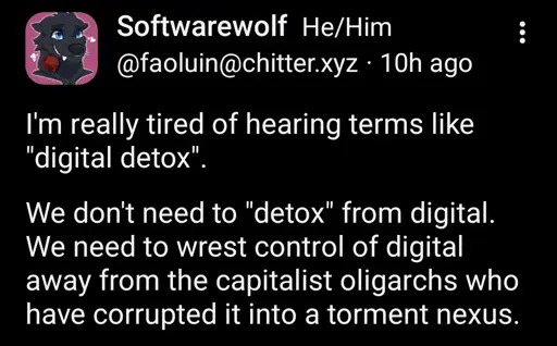 not_IO@lemmy.blahaj.zone to Microblog Memes@lemmy.worldEnglish · 17 days agowish i had more time and energy for good digitalplus-squarelemmy.blahaj.zoneimagemessage-square0linkfedilinkarrow-up13arrow-down10