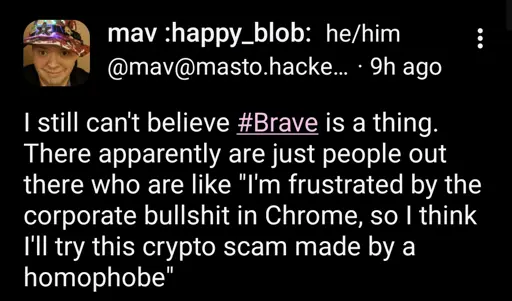 arrow-up12arrow-down1imagewhotd uses braveplus-squarelemmy.blahaj.zonenot_IO@lemmy.blahaj.zone to Microblog Memes@lemmy.worldEnglish · 22 days agomessage-square19linkfedilink